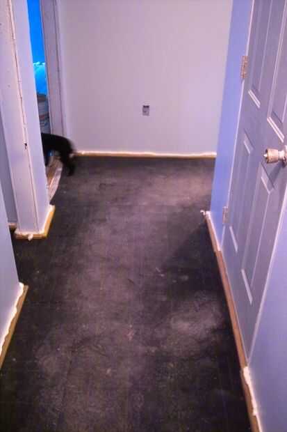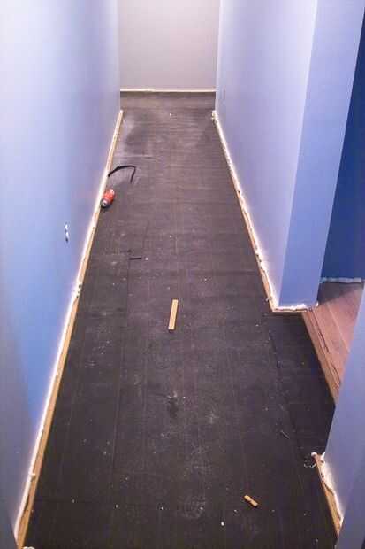 Quería un poco de espacio entre la pared y el suelo de expansión y contracción así que decidí usar madera tratada por lo que es esencialmente la forma de la losa. Quería dejar estas en el lugar después de que el mudpans se realizaron sobre todo porque pensé que si volví y probado para los flojos agrietaría la mudpan más con grapas fieltro de techar hacia abajo en el piso otra vez para la expansión / contracción y la madera muy bien trabajaban para asegurar las fronteras. Dejó unos un hueco de 3/8 de pulgada entre las tiras de madera y la pared llena de expansión de espuma y cortarlo al ras antes de vaciar el cemento. Traslapó el sentía lo mismo que hacer cuando se hace un techo. Utilicé el fieltro más pesado solo por costumbre pero mirando hacia atrás esto hubiera sido un buen momento para utilizar el fieltro más claro porque quiere poner abajo bastante plano y quiere estar seguro del peso de 5/8 de pulgada puede forzar abajo cualquier protuberancias que causarían un punto fino.