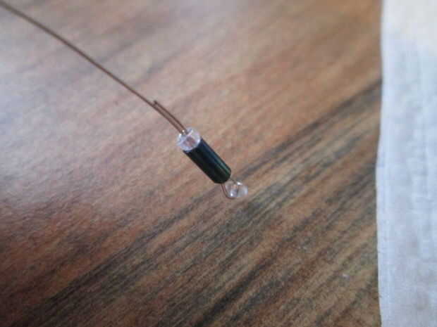 Recoger un grano de Clarín y otro de semillas de bolas. Ejecute estos granos hacia el grano de la semilla, para que las cuentas de ambos circulan por ambos cables.