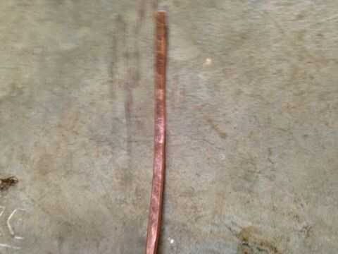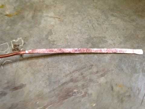 Sólo tomó el alambre apoyado en nuestro sótano y golpeado todo, teniendo cuidado de no poner ninguna marca extraña en él. Yo hubiera usado mi yunque, pero estaba nevando fuera y no quiero trabajar en la tienda de congelación. Quiero esto para mí usar así que tomó mi martillo y había añadido algunos volantes en los laterales de la banda, por lo que se vería un poco mejor conmigo. una vez que estaba contento con cómo lo miraba yo había cortado a la medida.