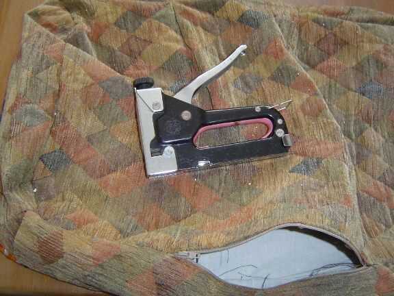 Había considerado con velcro para hacer el cojín desprendible, pero decidió preferí la sujeción al estar tan cerca del borde como sea posible, más fácilmente alcanzable por la perforación directa.
