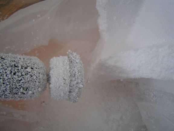 Rodar el borde de la bolsa grande de abajo un poco para estabilizar le, poner la primera bolsa más pequeña en que rodaron otra vez por un poco y puso su primera pieza de embalaje en aquí. Comenzar a usar el cepillo de alambre eléctrico para tira lejos el embalaje, para que los trozos caigan en la bolsa que desea llenar. Recuerda que esta bolsa ha de caber a través de tu código postal y aplastar abajo así que no lo sobrellene. Hacer lo mismo una segunda bolsa. Tuve suficiente con dos pero tres habría hecho para un llenado más uniforme.