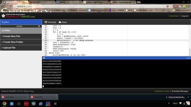 #Uses flotante entradas GPIO4 GPIO17 y GPIO22 para generar números realmente aleatorios