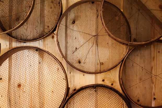 2. Mediante cualquier forma de colador, separar los líquidos de los sólidos "(granos gastados del)