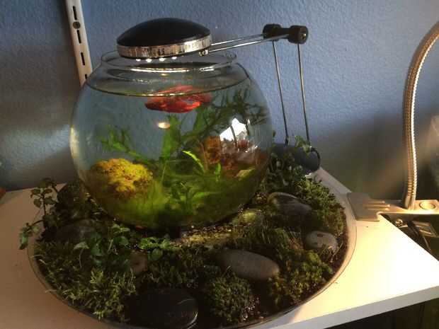 A continuación vamos a dar un paso más y rodean la casa de tu betta con hermosas plantas y utilizar el desbordamiento de agua. Aquí está cómo lo hice.