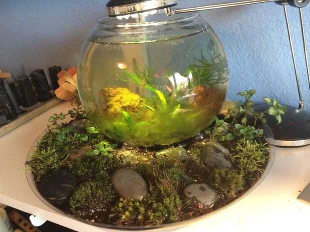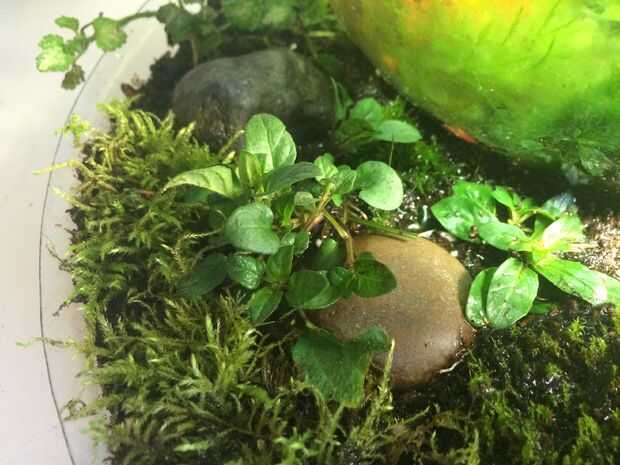 Se reúnen algunos musgos y pequeñas piedras para frente a su tanque, nada lo suficientemente alto como para ocultar su punto de vista. Entonces elegí algunas plantas más altas de planta cubierta para ir a ambos lados del tanque. Asegúrese de que no están recogiendo las malas hierbas.