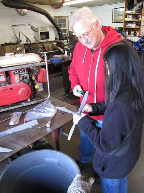 Probando helice para ver cuál proporcionaría la mayor fuerza de propulsión.