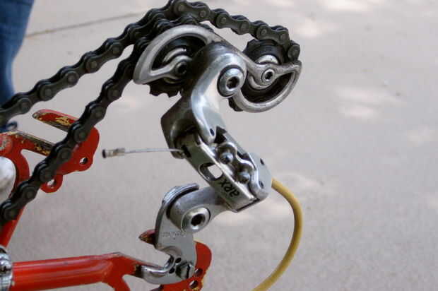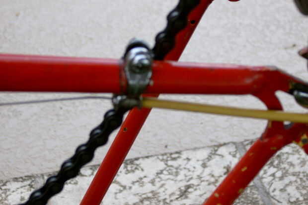 tomó una bicicleta vieja, rescatados de un asiento de coche-motor de 12 voltios de otro proyecto de energía y funcionó la cadena alrededor de la llanta trasera. Me parece lo fascinante es casi peligroso para encender; Podría pasar una hora viendo las