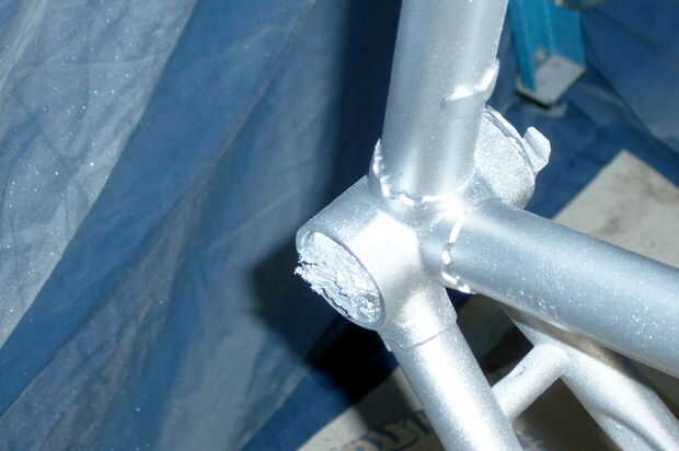 Porque sé que habrá una gran cantidad de plata en la moto, solo di la moto toda una buena capa sólida de la plata. Espere hasta que la pintura ya no es pegajosa Rocíe otra capa. El tiempo promedio de secado es aproximadamente 30 minutos en un día con una pequeña cantidad de humedad. Aunque le costó casi ocho horas para secar cuando la humedad estaba en cerca de 90%.
