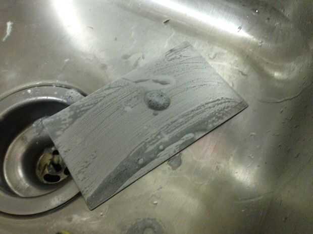 Lijar y limpiar bien el acero. A menudo es un acabado que debe eliminarse. Usé una lijadora, luego una esponja de cocina de acero, luego Friend de Bar Keeper. Entonces, séquelo y apartar.