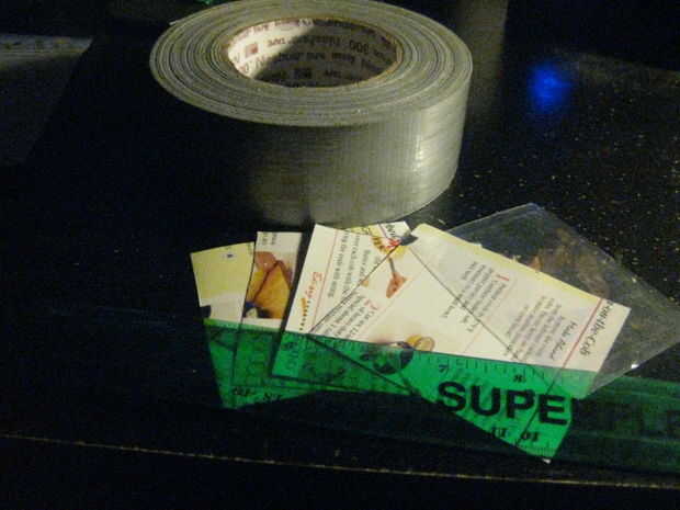 Lo que necesita:-Conducto de cinta los colores de su elección. (Para esta carpeta estoy usando tres colores).-Tijeras sharp-Un billete de un dólar-a12 pulgadas regla-pluma (un color que se mostrará en la cinta, no permanente).-Una superficie plana du