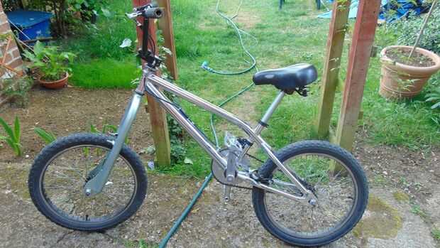 También tuve una híbrido Halfords x salto/truco moto, que era un pedazo de basura. Había puré de rodamientos y comenzaba a oxidarse en el interior. Pero las partes en eran compatibles con una BMX.