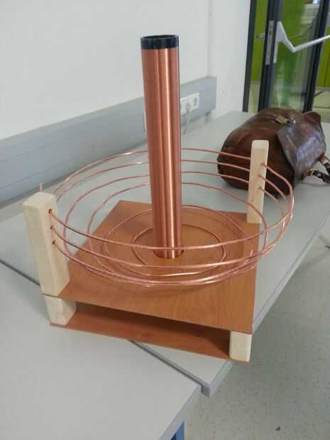 En el extremo superior de la bobina del toroide se colocará. En nuestro caso es una rosquilla de espuma de poliestireno. Para hacer conductora la cubres con papel de aluminio. Antes de conectar el cable de la bobina secundaria a la toroide, pulir el extremo del alambre con algún papel de lija para quitar el aislante del cable. Si se salta esta parte pequeña pero importante, que la conexión no funcionará. El extremo inferior de la bobina secundaria conduce a la tierra.