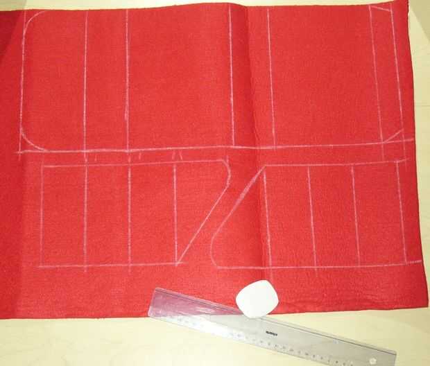 Asegúrese de que todas las líneas de la cuadratura. No necesitas añadir un margen de costura, porque el borde del fieltro va a permanecer la manera es después de cuttig.