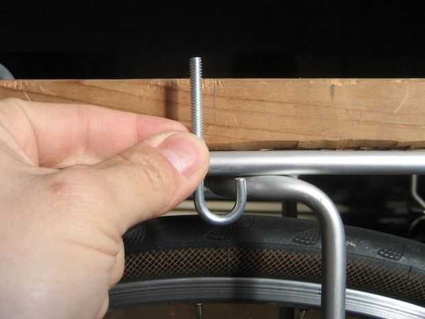 Los ganchos de J asegura el 2 × 2 y su bolso a su estante de bicicleta enganchando la barandilla de su estante de la bici a través de 2 × 2. La tuerca de nylon mantiene firmemente y asegúrese de que no afloje con el tiempo. Localizar un par de buenos lugares para perforar agujeros para tus J-ganchos y pernos abajo el 2 × 2 con una arandela y una tuerca de nylon. Obtenerlo ajustado y apretado, por lo que 2 × 2 se fija al bastidor de la bicicleta. Si usted está tan inclinado, sierra para metales del exceso de hilo en los ganchos de J.