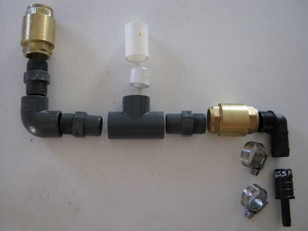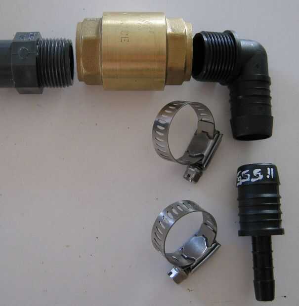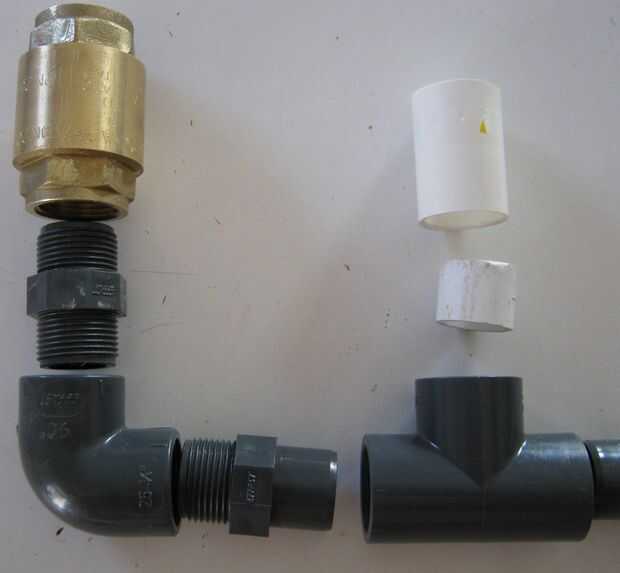 Inicialmente utilicé dos 3/4" válvulas de retención, pero después de algunas pruebas encontré que una válvula de 1" trabajó mucho mejor para la puerta de residuos que los más pequeños. Usé un 1" conector de la válvula de 1" a 3/4" adaptador para el conector original de 3/4".