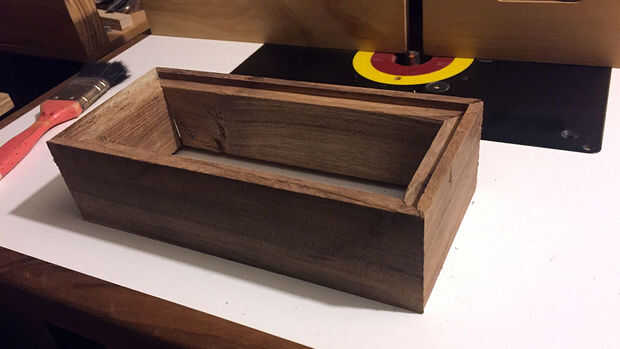 Luego fue tiempo de ir a la mesa de fresadora a añadir un encaje a los lados, que es donde la parte superior e inferior cubiertas fit. Después de prueba de ajuste de un seco las piezas estaban listas pegar.