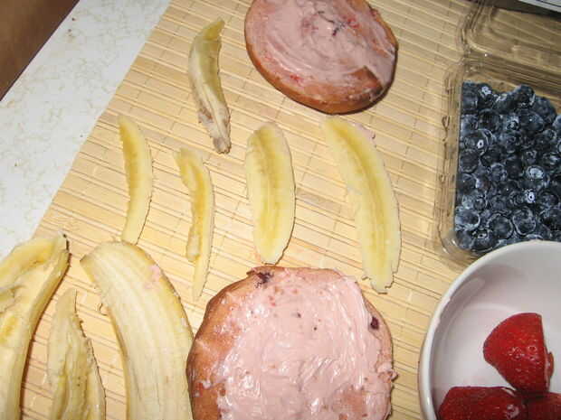 Cortar las bananas y las frutillas en rodajas pequeñas.