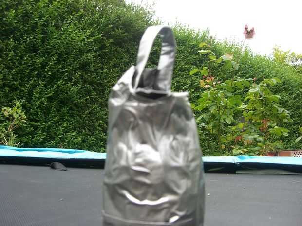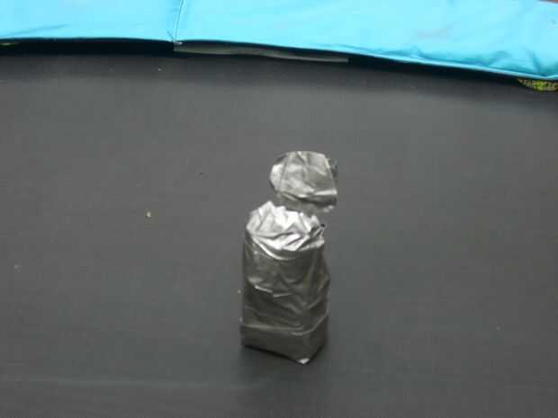 Luego corte un circleout de la cinta del conducto lo suficientemente grande como para actuar como una tapa. Reforzar con más cinta.