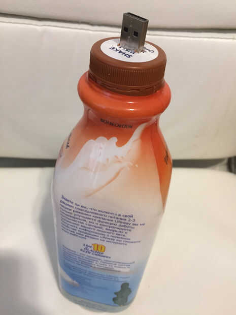Bueno, aquí es una unidad flash usb personalizado. Un kéfir botella USB :) No es impresionante!