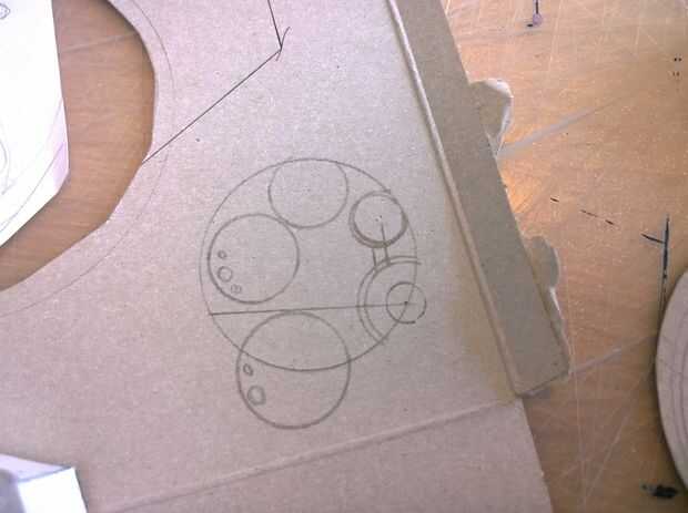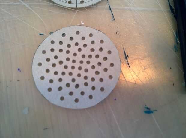 - Dos agujeros de 2 pulgadas de diámetro para los altavoces. Puede utilizar las plantillas de rejilla altavoz incluido, que se cortaron de la cartulina y entonces perforadas con un sacador de agujero de 2mm, o crear algo más.