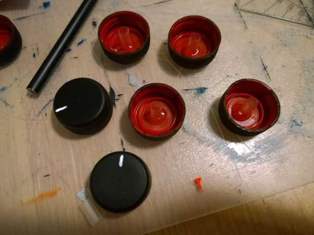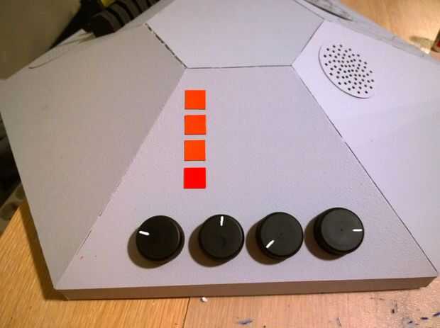 - Varios diales, botones y palancas. Hemos incluido las plantillas para nuestro banco de palanca, corte de espuma negro. Puede utilizar tapas de botellas de agua/soda (que algunas pintadas), más cartón o espuma, o apenas sobre cualquier otra cosa se puede pensar.