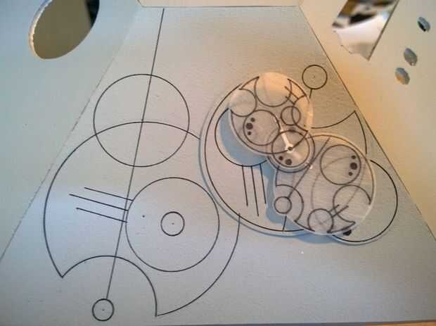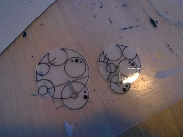 - Un reloj de Gallifreyan. ¿Todo es cuestión de tiempo, correcto? Aquí Kiki utiliza las tripas de un despertador de Ikea barato, quita las manos y reemplazándolas con Shrinky Dink Gallifreyan símbolos (así como añadir algunos a la consola). Sí, corre y le dice a tiempo. Usted puede incluso utilizarlo como un despertador, aunque es algo incómodo. Para inspiración, revisa esto: http://timeturners.wikidot.com/circular-gallifrey...