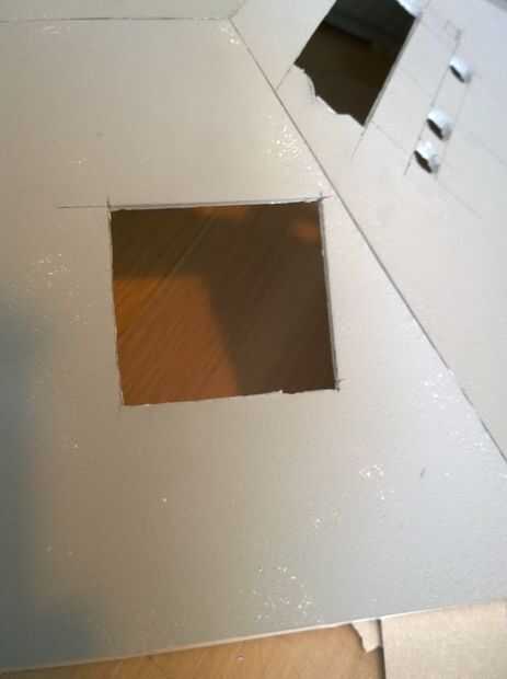 - Una abertura para el botón "ir". Este es un pequeño botón, más delgado que la mayoría de placas de espuma, lo más probable es que alguna extensión debe hacerse de eso. Kiki utiliza un pequeño pedazo de espuma.