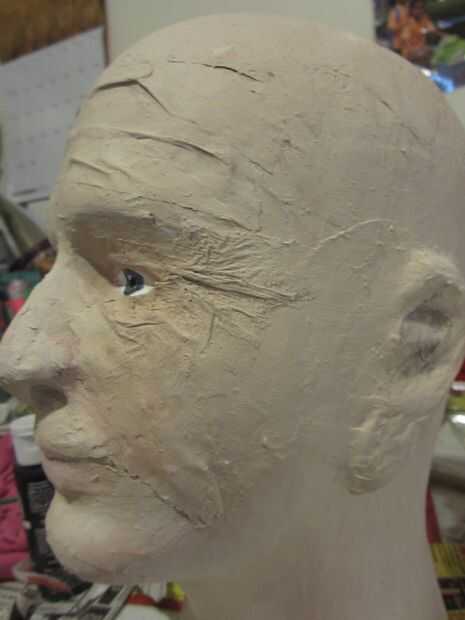 Pintar una versión un poco más oscura, más rosada de la pintura del color de la piel en las arrugas y los detalles de la cara, como alrededor de la nariz.