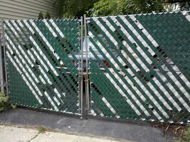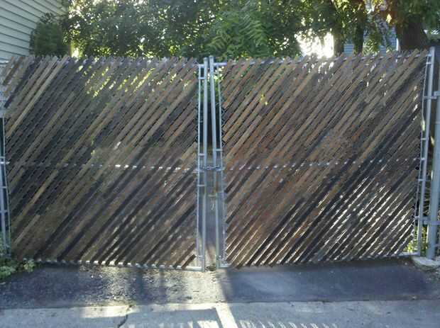 Más tarde, había destripado mi sala de estar y terminó con una pila grande de listón y apilados en el patio de mi casa al lado de la valla. Un día cogí un pedazo y y pensamiento como se vería si cubre la cerca con ella. Puesto que no sabía cómo sostendría hice una prueba donde cubre una sección de la puerta y lo dejó durante un año. Realmente soportó tan bien que no puede decir que es "nuevo".