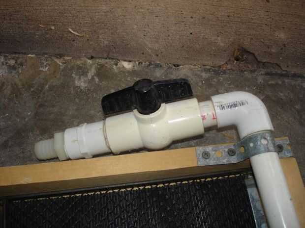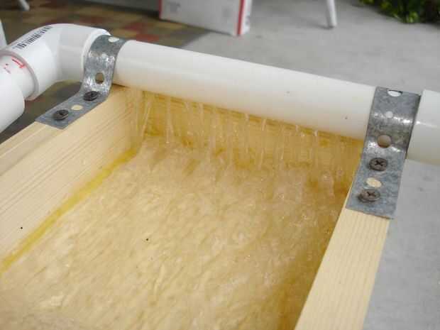 Os adjunto el spraybar a la parte superior de la compuerta con fleje de acero y tornillos. Abajo se encuentra una foto de un ensayo temprano.
