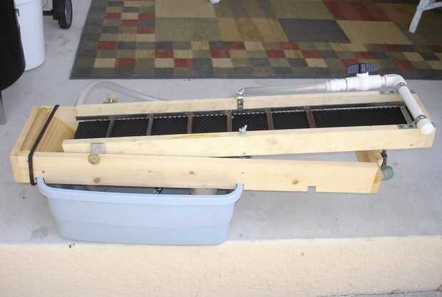 He probado la compuerta utilizando dos tipos diferentes de filón. Primero usé algunos machacado mineral de oro de una mina de oro de roca dura de trabajo, sólo para ver cómo la esclusa sería coger oro. Corrí el mineral triturado a través de la esclusa y luego hizo una limpieza. La foto 3 aparece a continuación muestra los resultados después de lavado el material dejaron en la compuerta. Cogió un montón de oro, pero ¿que coger todo? Era la gran pregunta. Así que fui al problema de lavado todo el material que entró a través de la esclusa y la tina, al ver la cantidad de oro la compuerta perdido. Encontré ninguno! La esclusa tiene todo el oro del mineral triturado. Fantástica.