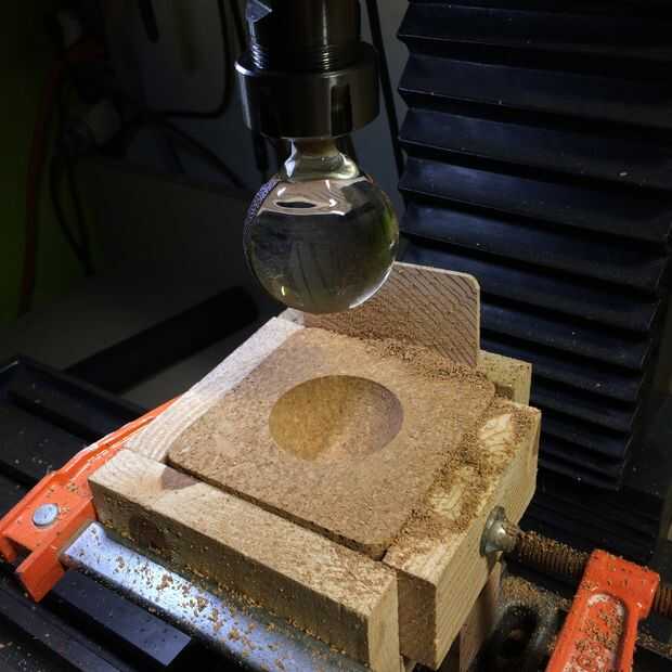Yo estaba feliz de encontrar que mi granito de arena de cristal no debía relegarse a la basura, o incluso peor, para ocupar espacio en el cajón de basura por toda la eternidad. El corte de mis radios de acero de herramienta era grande, pero la forma no era perfecta y el acabado de izquierda de esos pases de rascado áspera era, bueno, bastante a áspero. Ocurrió que pude tomar una pasada final con mi cristal broca para limpiar. No debe de preocuparse sobre su defecto pegamento como estaba quitando material tan poco esta vez. Lo intenté hacia fuera-funcionó como un encanto!