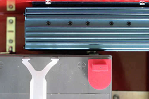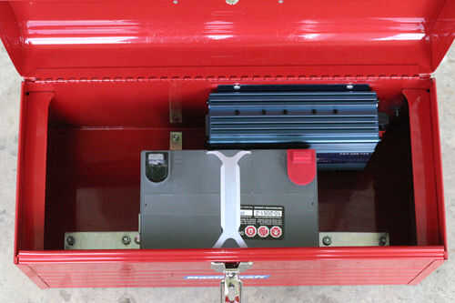 Coloque la batería en la caja para verificar el espaciamiento. Si lo hice otra vez, le Monte el inversor frente a la dirección del lado izquierdo de la caja, para que el interruptor está en la parte superior y fácilmente accesible.