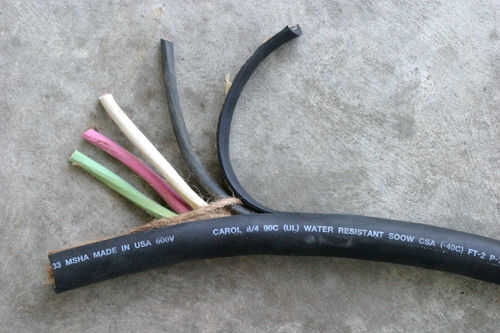 Use alambre trenzado de calibre 8 en lugar de cadena. Es mucho más flexible y se ejercer menos fuerza en todas las conexiones. SOOW cable de 8GA tiene varios alambres trenzados dentro y es relativamente barato.