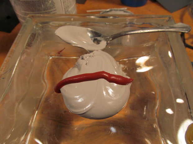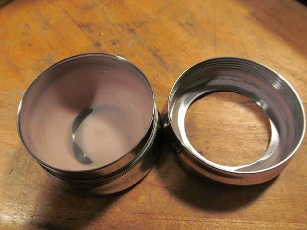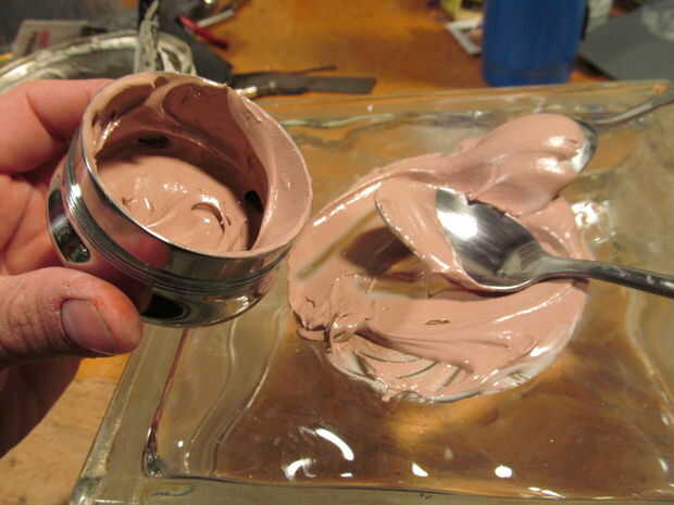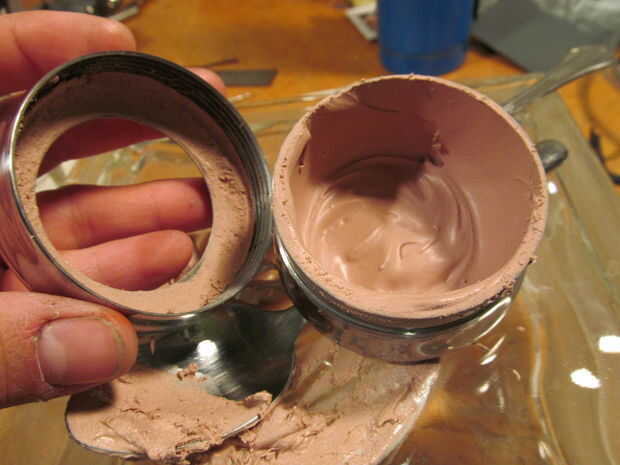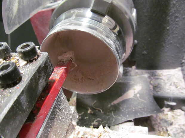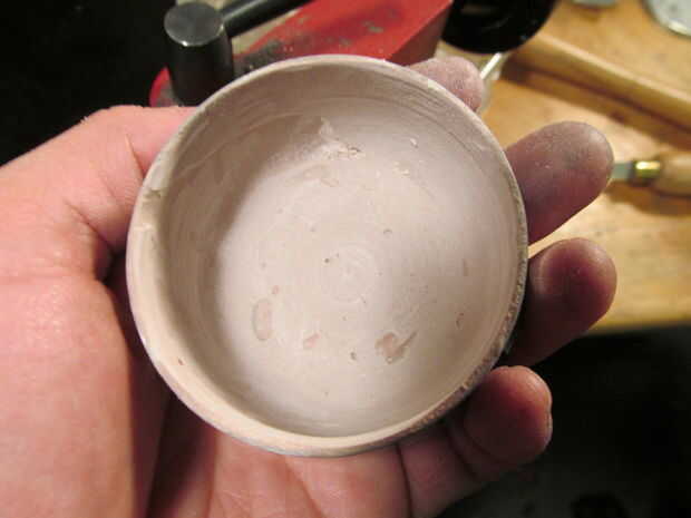 Para tener un interior liso que decidí llenarlo con cuerpo de auto relleno. Primero mezcla el relleno y luego la cucharilla en la caja y la tapa. Áspero que forma con la cuchara y una vez que fue curado lo mecanizado en mi torno.