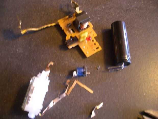 Siga por favor las fotos paso a paso para desmontar la cámara, un quitar el condensador de descarga y eliminar el transformador de encendido pequeño. Después de que vio la imagen de abajo para soldar.