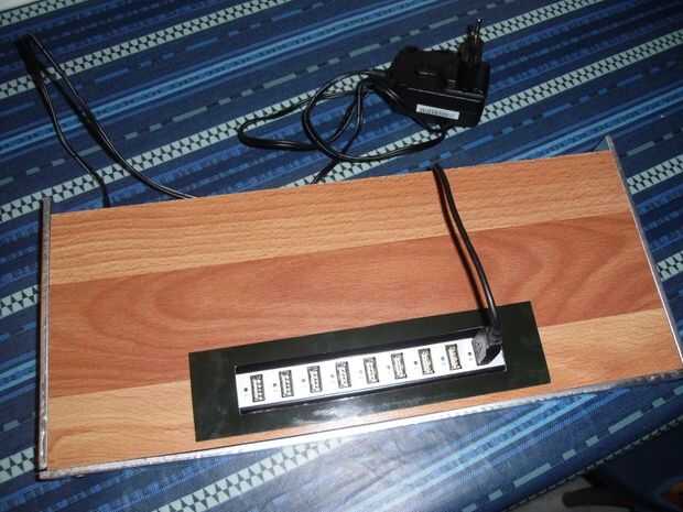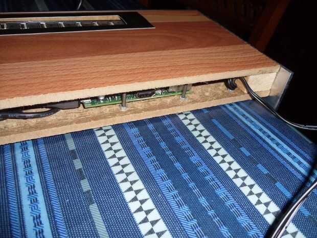 Colocar el plexiglás en la frente y los lados. El plexiglás es más alto que las casas de madera. de esta manera, el caso es levantado del suelo y los agujeros para disipar el calor pueden funcionar.