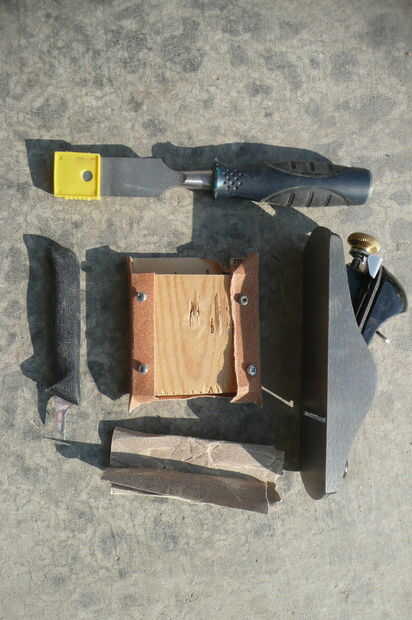grano grueso papel de lija (grano 80 o 100) con el bloque de