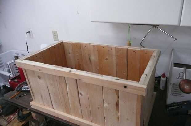 Poner de lado largo de cada aro en mi espacio de trabajo (el piso), utiliza el resto de mi recuperados tornillos para sujetar los extremos superior e inferior de mis piezas de pared en el interior de los aros. He querido como pocos sujetadores mostrando como sea posible para que ellos en atornillado desde el interior de la caja. Aquí es donde dos ejercicios prácticos: uno pretaladrar los agujeros para evitar que se resquebraje (cuidado de no ir a través de todo el camino) y el otro para conducir los tornillos.