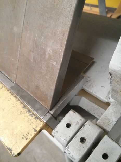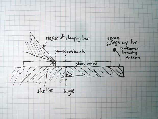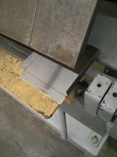 Utilizar el freno de caja para doblar las pestañas de 90 grados. En primer lugar, retroceder la nariz desde la articulación de 0,032"(1/32"), el espesor de la chapa. Luego, doble cada ficha, asegúrese de que la nariz del freno es correcta contra la línea de plegado. Es mejor utilizar una esquina del freno, doblar una pestaña, girar la pieza, doblar la ficha siguiente y así sucesivamente.