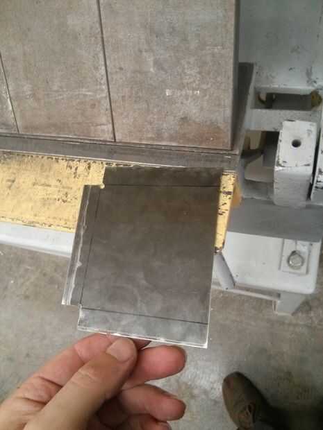 1) en primer lugar usted quiere hacer una plantilla ampliada para su caja de cartón, papel, etc. (una versión plana de la caja. Tengo un papel de gráfico en las fotos abajo, pero no para esta caja)2) trace la plantilla a la pieza de metal de hoja, co