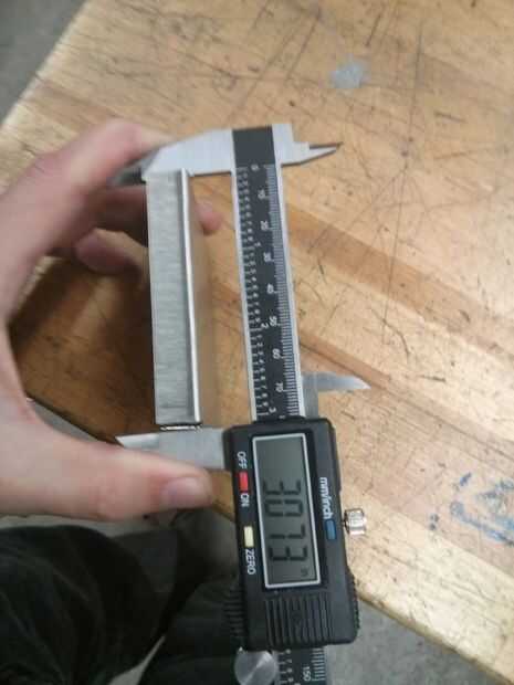 En las imágenes, he medido el ancho en dos lugares diferentes, y el máximo es 3,141", que es más cercano a 3 5/32", así que esto es lo que usaré para w el. La medida máxima en la otra dirección es 3,073", o aproximadamente 3 1/16", así que esto es H para mí.