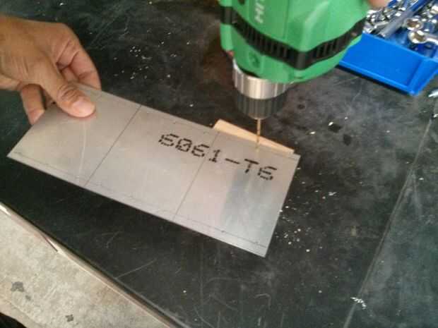 Perforar las marcas del remache y perfore con un 3/32" bits.