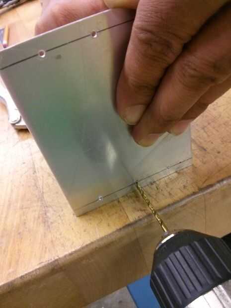 Ahora quite los clecos y utilice la broca grande para eliminar las rebabas de ambos lados de todos los agujeros por suavemente, girando una vez o dos veces en cada orificio. No tarda mucho.