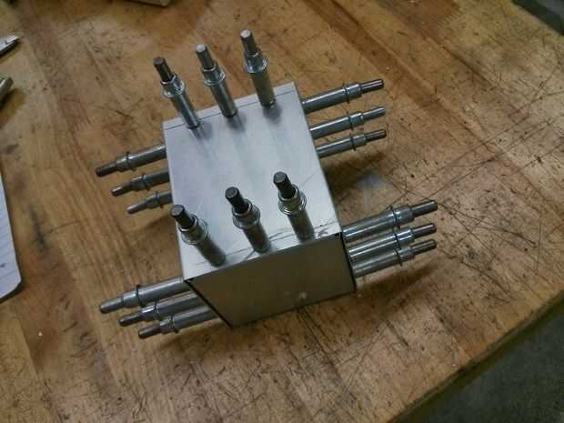 Luego, usando un #40 taladro y sosteniendo un pedazo de madera en el interior, perfore el orificio central. Poner un sujetador Leco a través del orificio para sostener las piezas en su lugar y su forma de trabajo hacia el exterior, cada agujero de la perforación y de fijación con un Leco.