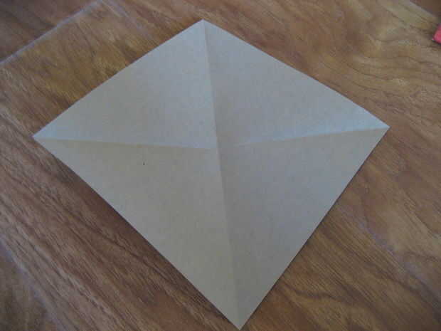 En primer lugar usted toma el papel de origami y dobla por la mitad diagonalmente y se supone abierto arriba y dóblalo diagonalmente otra vez y luego se abre para arriba otra vez para formar una X