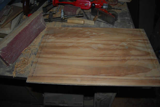 Después de secar la cola de las espigas, el exceso de espigas se elimina con el cincel y se pasa un "tratamiento" de papel de lija.