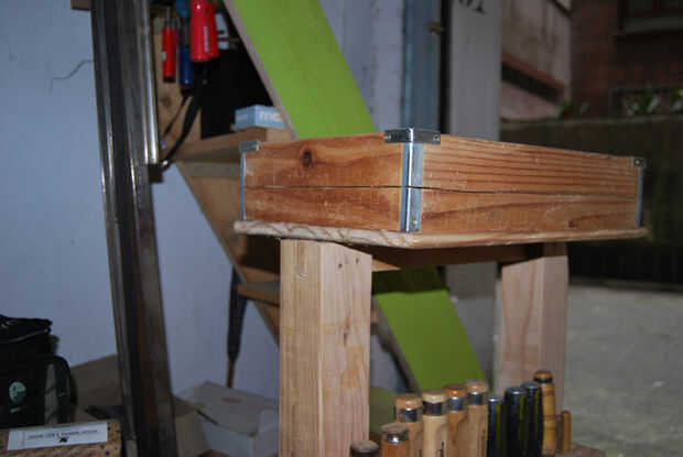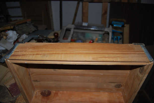 Alguien me dijo una vez una caja sin tapa, es como una jarra sin asas. Me refiero a si se corta la tapa, ni cama, ni nada. Así que marco de altura para cortar la parte superior. Agarré la sierra y corte de cornerbacks. Y luego, con mi sierra japonesa (a saber), corte de la madera. Pero no todo el perfil de una vez. Primero corta la parte trasera, y poner las bisagras. Y luego el otro.