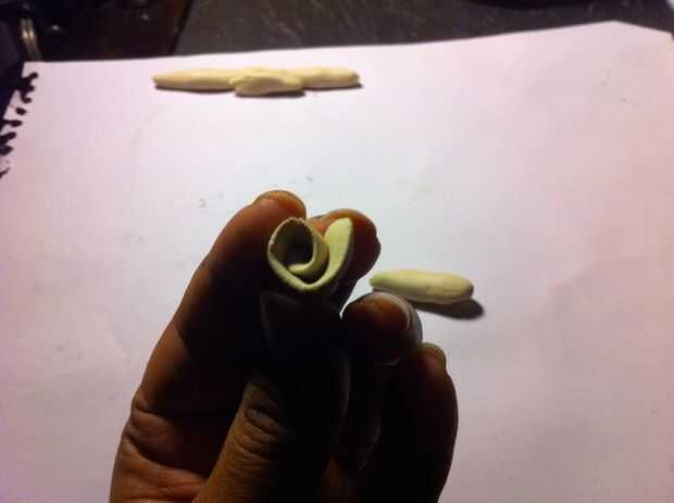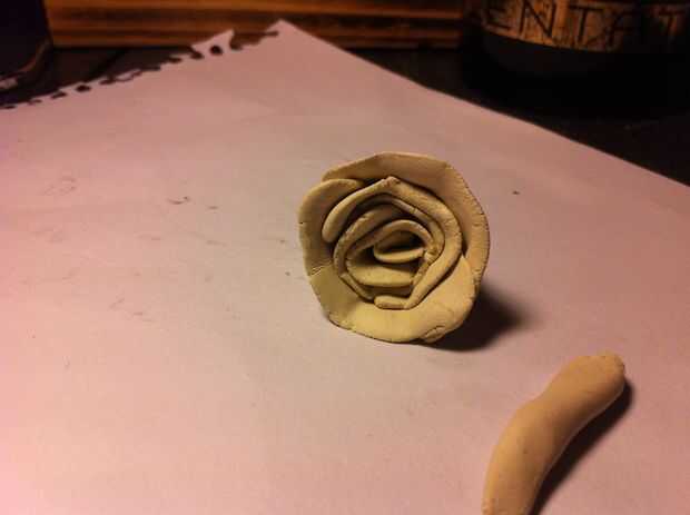 El truco es tratar de rodar la pieza de arcilla en un ángulo y pulse el pétalo hacia fuera para que no se limita fuertemente. Usted quiere tener el primer rollo a ser pequeño como los otros pétalos será mayores.