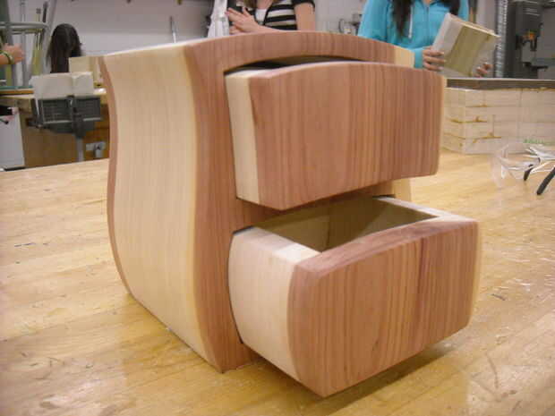 -El alumno aprenderá a resolver creativamente un problema de diseño... Cómo utilizar poco espacio de una manera interesante para el diseño de una pequeña caja con cajones. La voluntad del estudiante de aprender maneras de transferir y aplicar ese diseño a la madera.